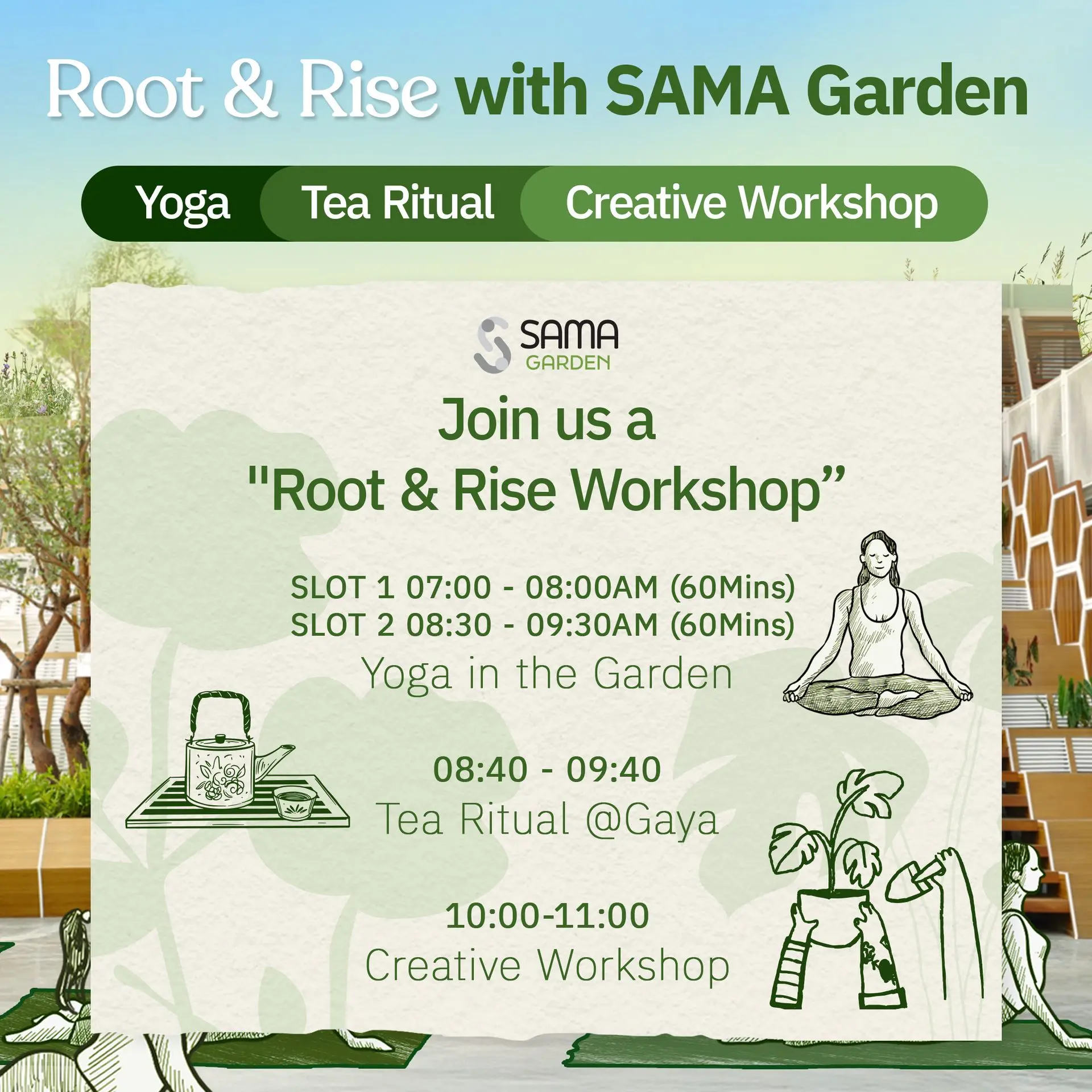 ⚡️ One event. Endless inspiration. Recharge your body, mind, and creativity at Root & Rise with SAMA Garden.